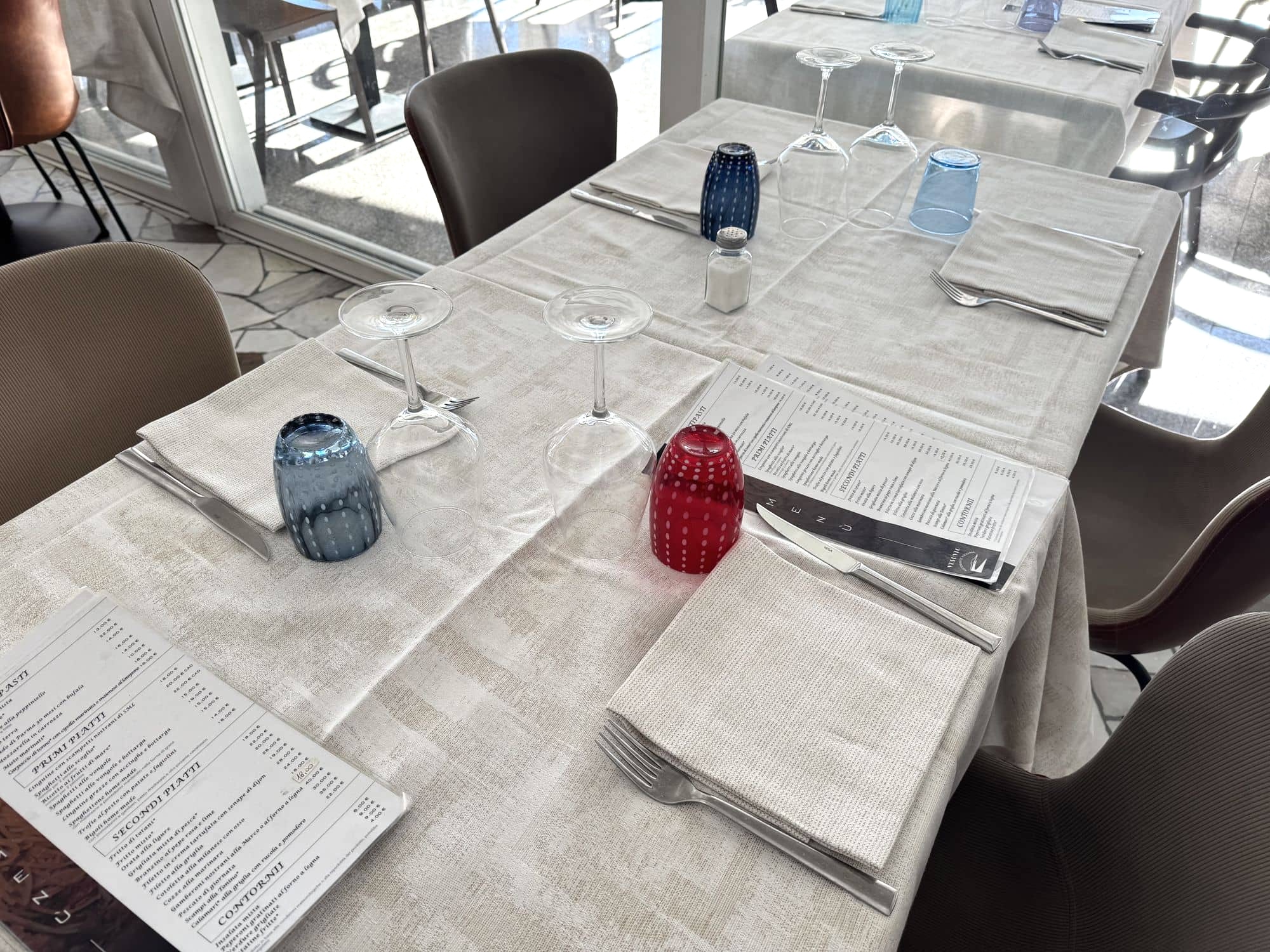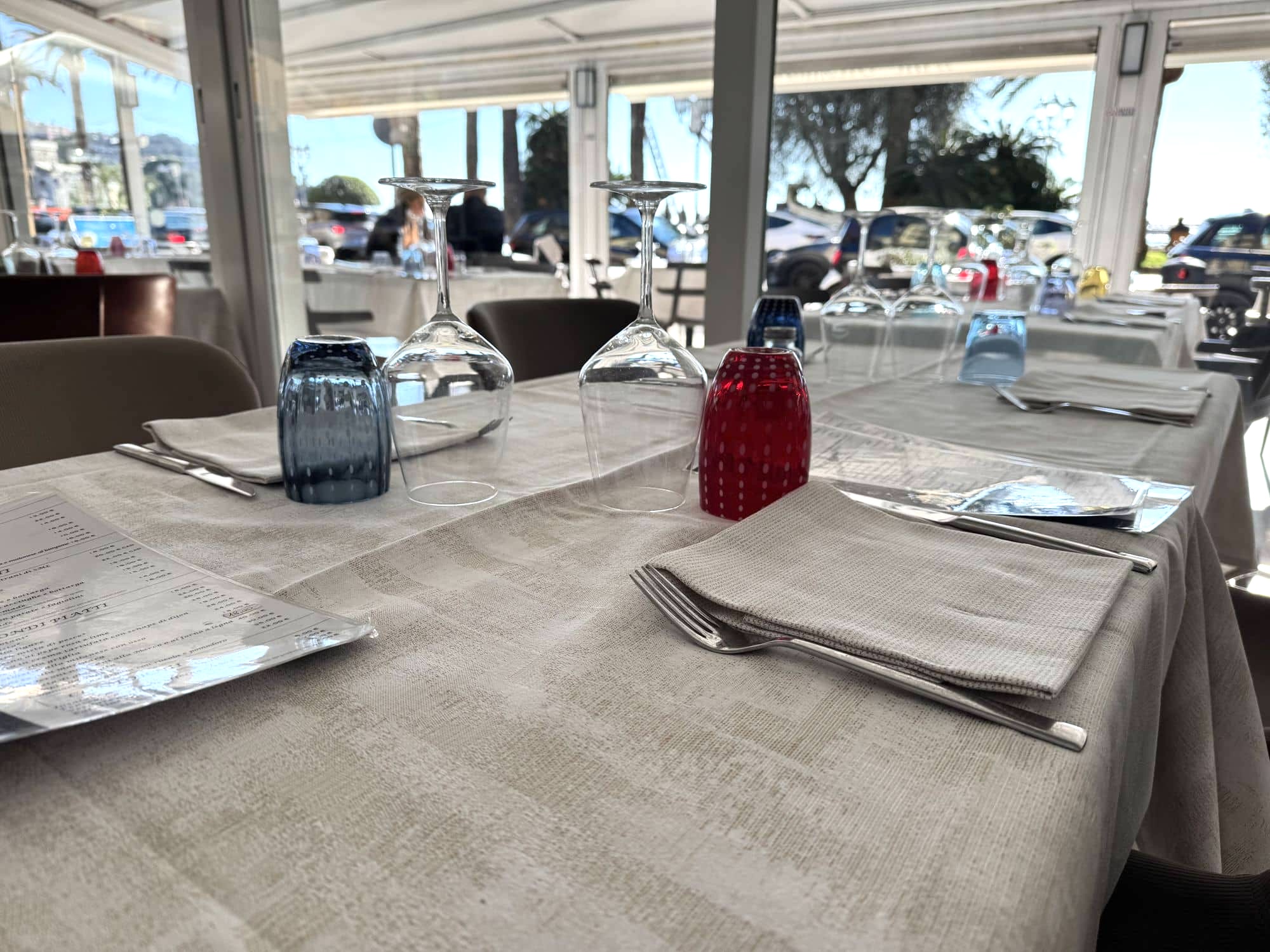 A restaurant completely surrounded by glass, overlooking Rapallo's splendid seafront promenade.